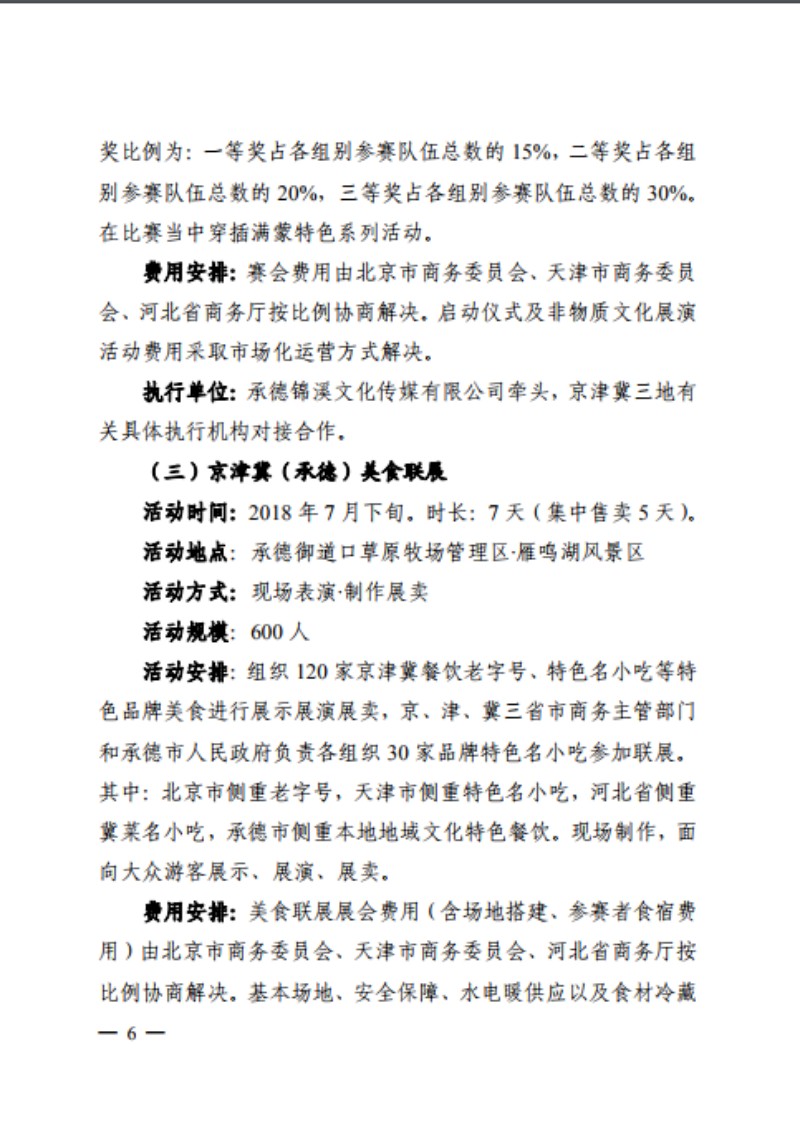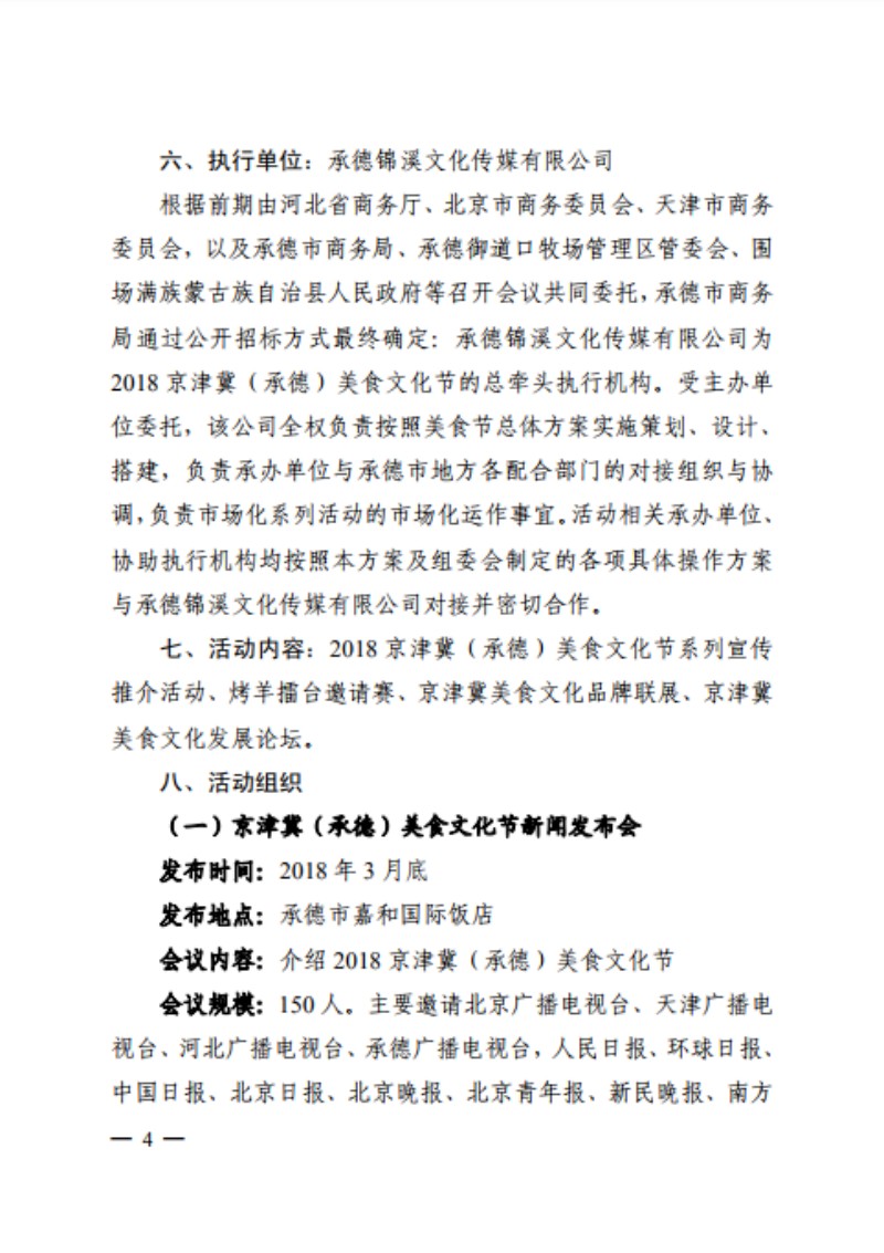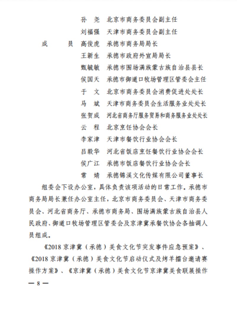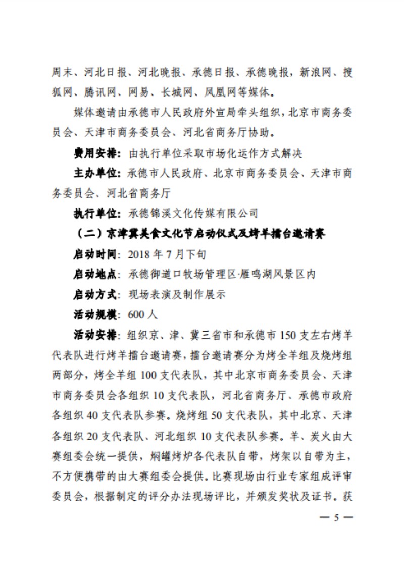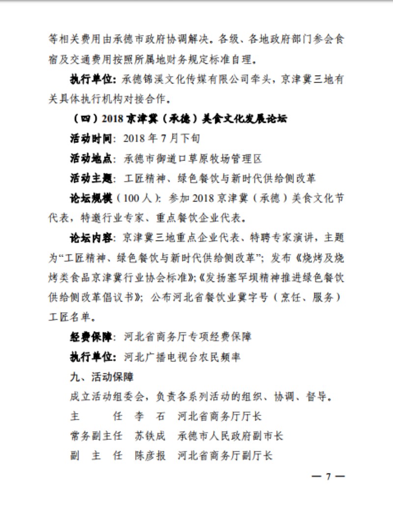 关于印发《2018 京津冀(承德)美食文化节》的通知