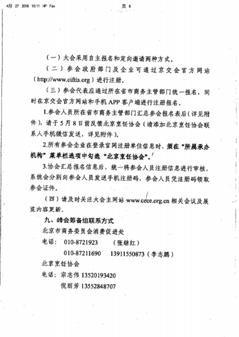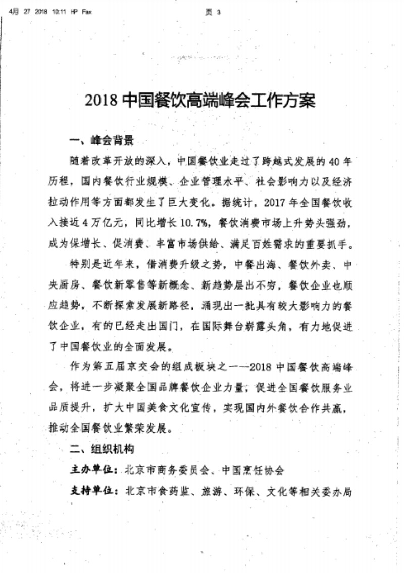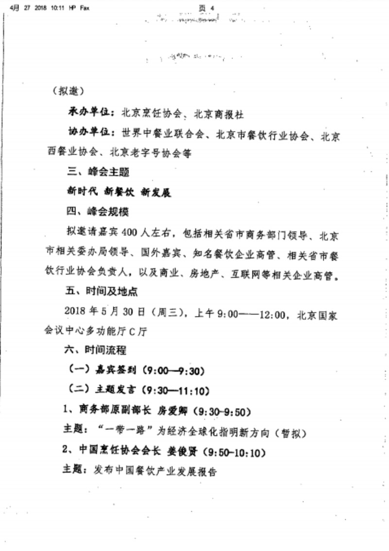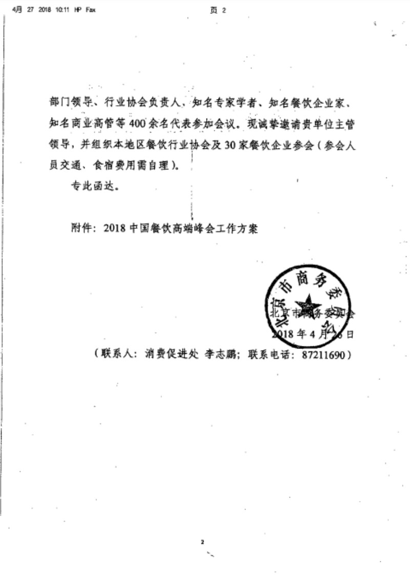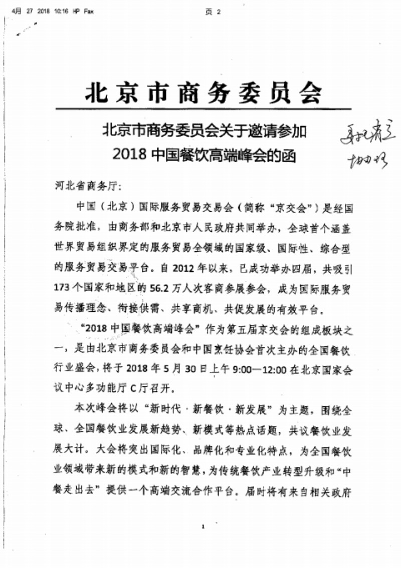 北京市商务委员会关于邀请参加2018餐饮高端高端峰会的函