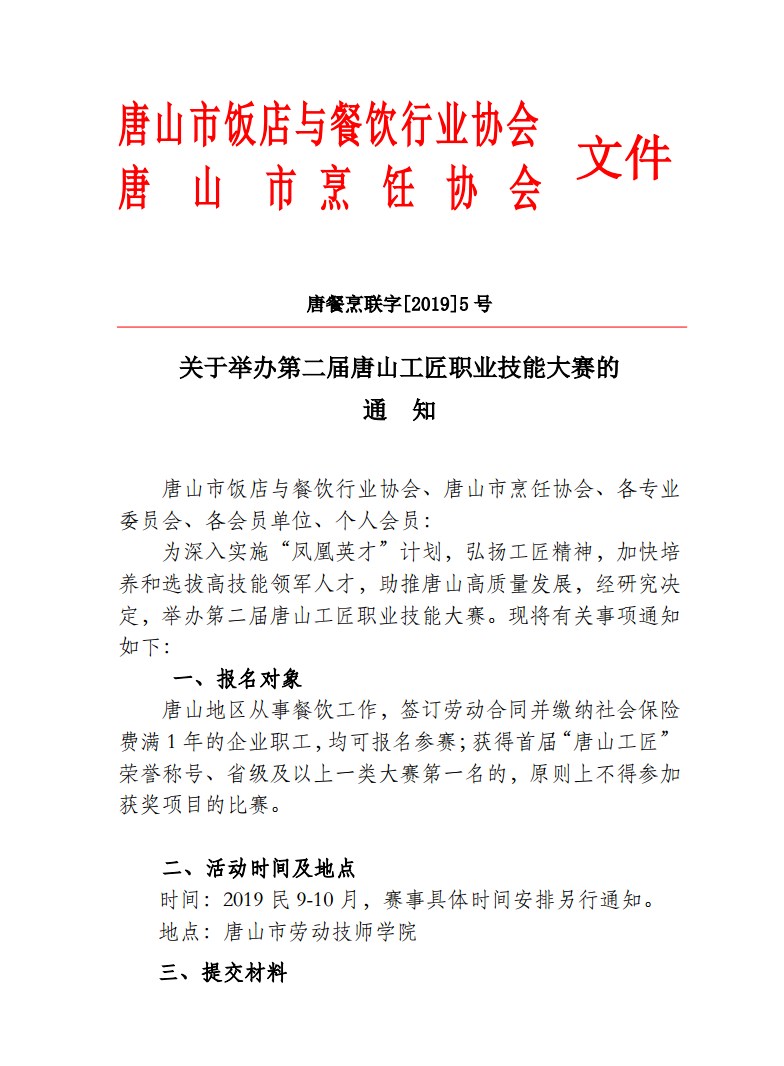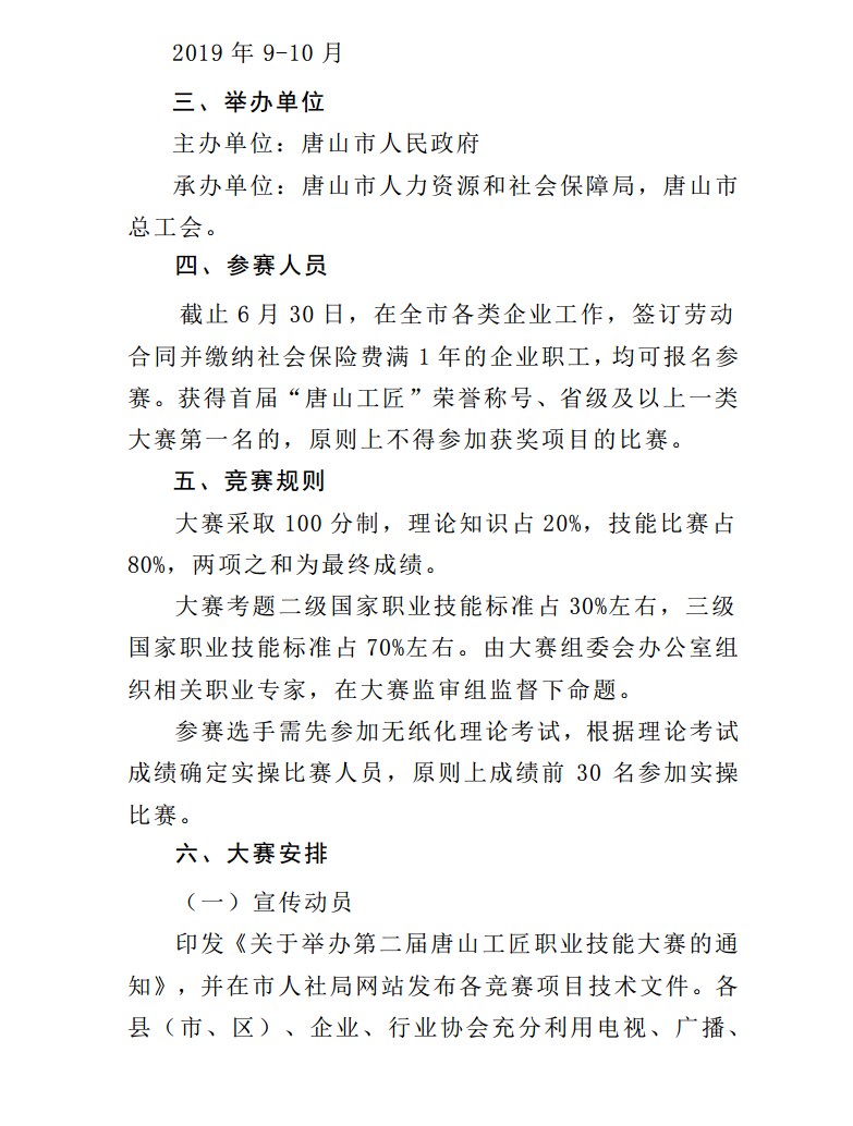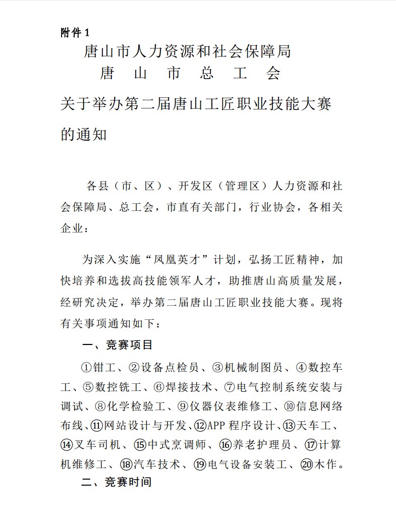 关于举办第二届唐山工匠职业技能大赛的通知