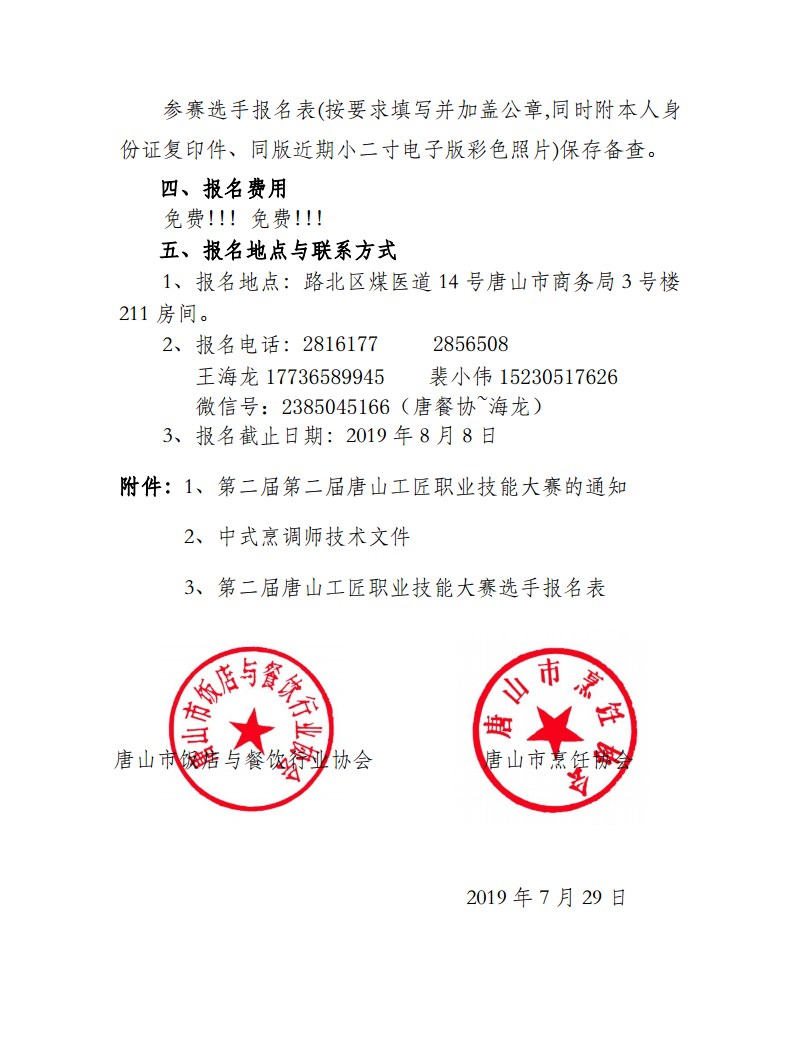 唐山烹饪协会协办