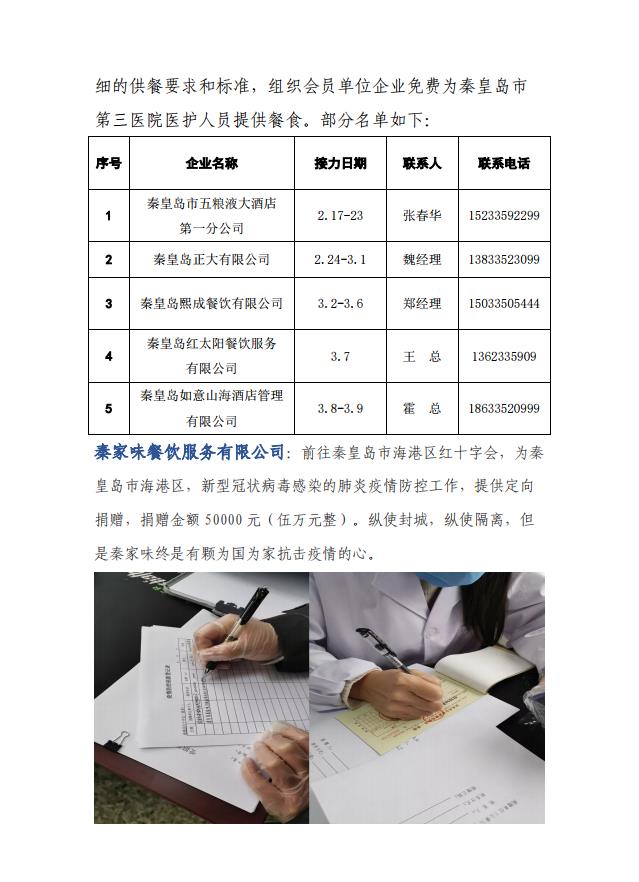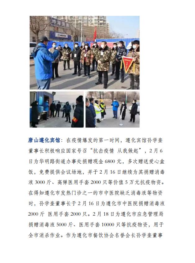 疫情期间河北省饭店餐饮人捐赠情况公报
