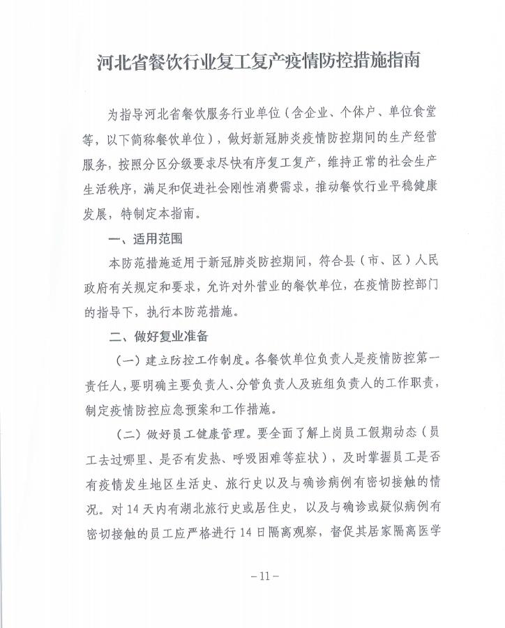 河北餐饮行业复工复产疫情防控措施指南