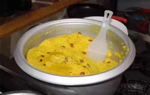 一定要用豆油煎黄米饭,颜色金黄,味道也香。