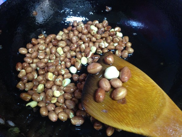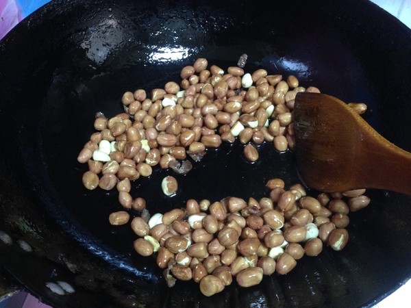 用水洗净,用温水泡2-3分钟,捞出控水(这样可以起到清洗的作用,还是炒制后保持酥脆的要点之一)