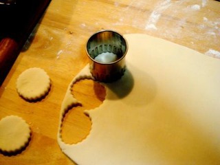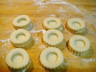 24、 用刻模再刻同样数量的圆面片,面片中间用稍小的刻模镂空。