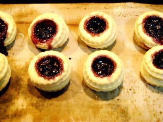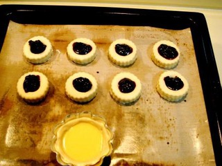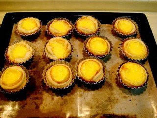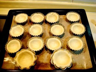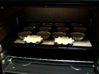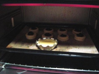 26、 蛋挞出炉后,把另一款小点置入烤盘。