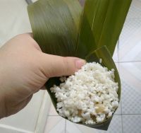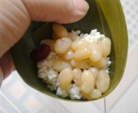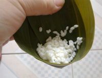2。在包粽子的时候,糯米不要加太多,不然最后裹的时候会漏米。