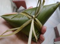 14.用马莲把包裹好的粽子扎起来,扎紧。
